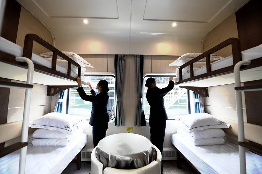 列车上配备了高品质家居用品、独立卫生间、恒温淋浴系统、智能电子锁具、无线网络覆盖等,营造舒适雅致的私享空间。