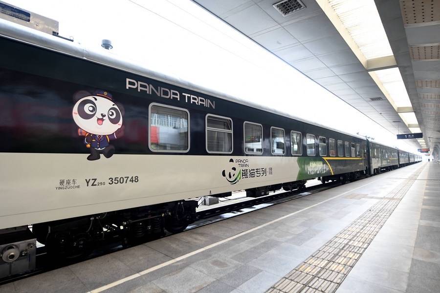 这趟“熊猫专列”由中国铁路成都局集团有限公司以25G型客车为基础,按照“移动星级酒店”标准改造而成,共有12辆编组,由1辆“熊猫悦府”(特级软卧)、2辆“熊猫雅舍”(高级软卧)、5辆“熊猫归阁”(高级硬卧)、1辆“熊猫餐厅”(餐车)、1辆“熊猫乐园”(多功能娱乐车)10辆主题车厢和1辆宿营车、1辆发电车组成,定员252席,车身内外装饰均植入了“熊猫”元素。