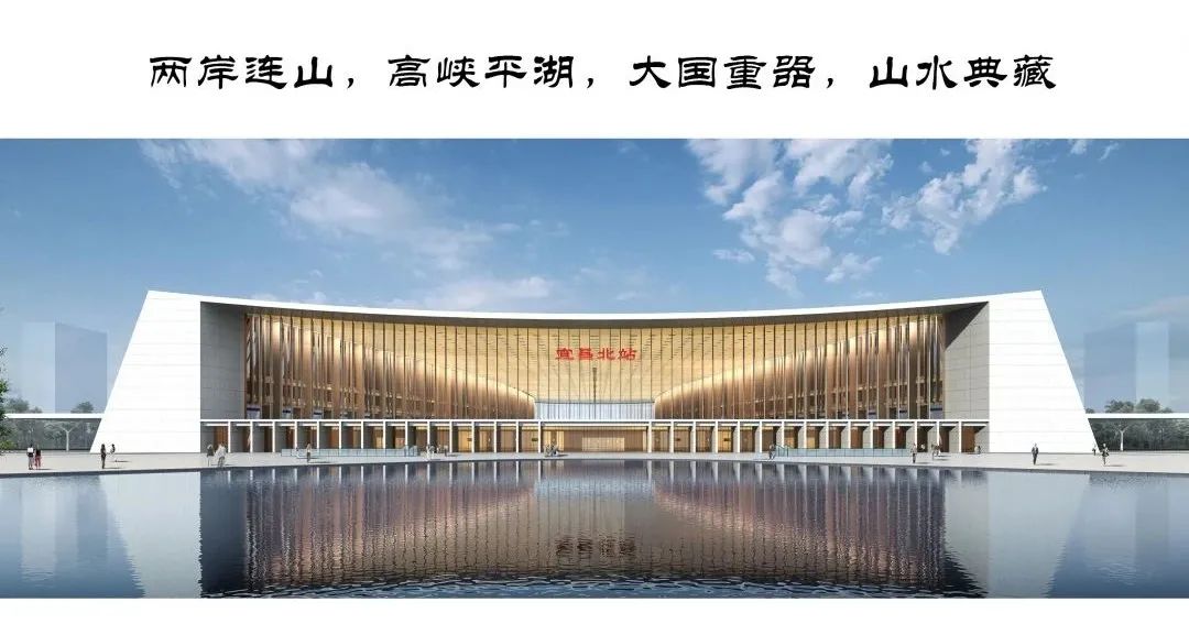 湖北宜昌拥有“世界水电之都”的美称,是三峡工程、葛洲坝水利枢纽工程所在地,中国铁设设计团队将三峡雄伟壮阔的高峡平湖及宏伟巨坝元素融入到火车站的造型中,以其标志性、名片化的形象塑造出宜昌市新的铁路枢纽门户。