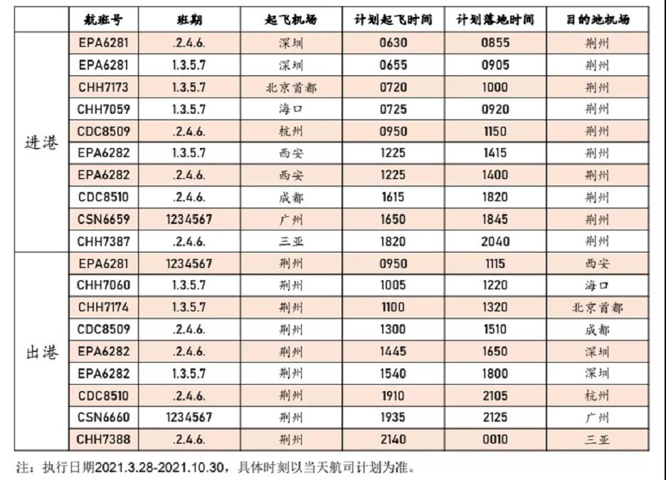 新航季在即,荆州沙市机场提醒广大旅客在出行前,务必提前确认乘坐航班时刻变动,以妥善安排行程,顺利出行。