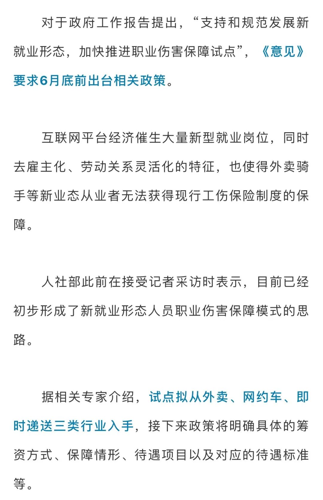 新业态职业伤害怎么保障?6月底前明确