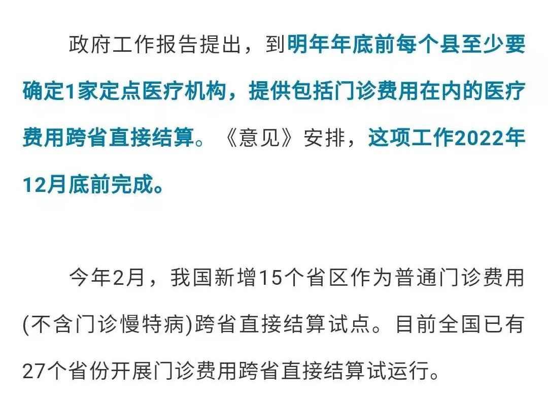 医疗费用跨省直接结算全覆盖,2022年年底前完成