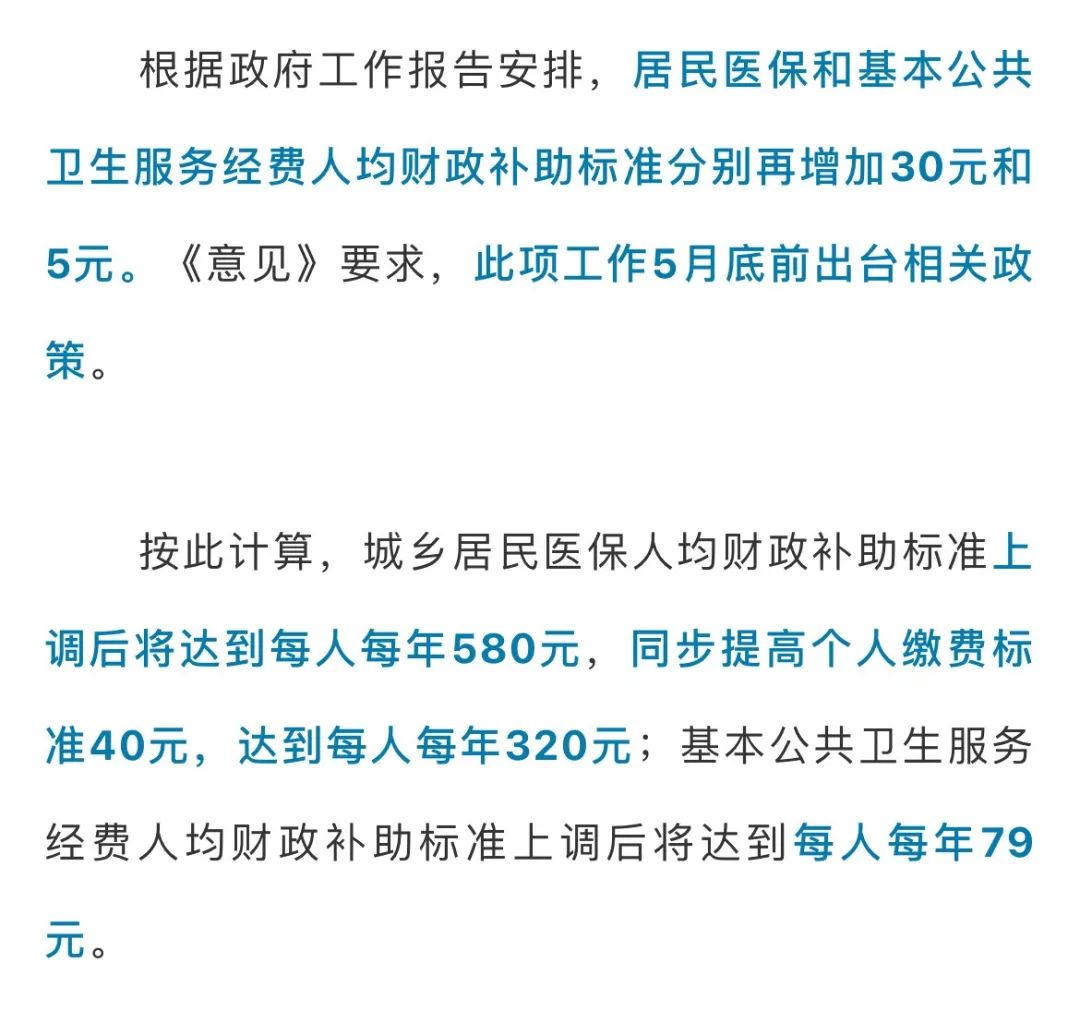 居民医保人均补助增30元,5月底前出政策