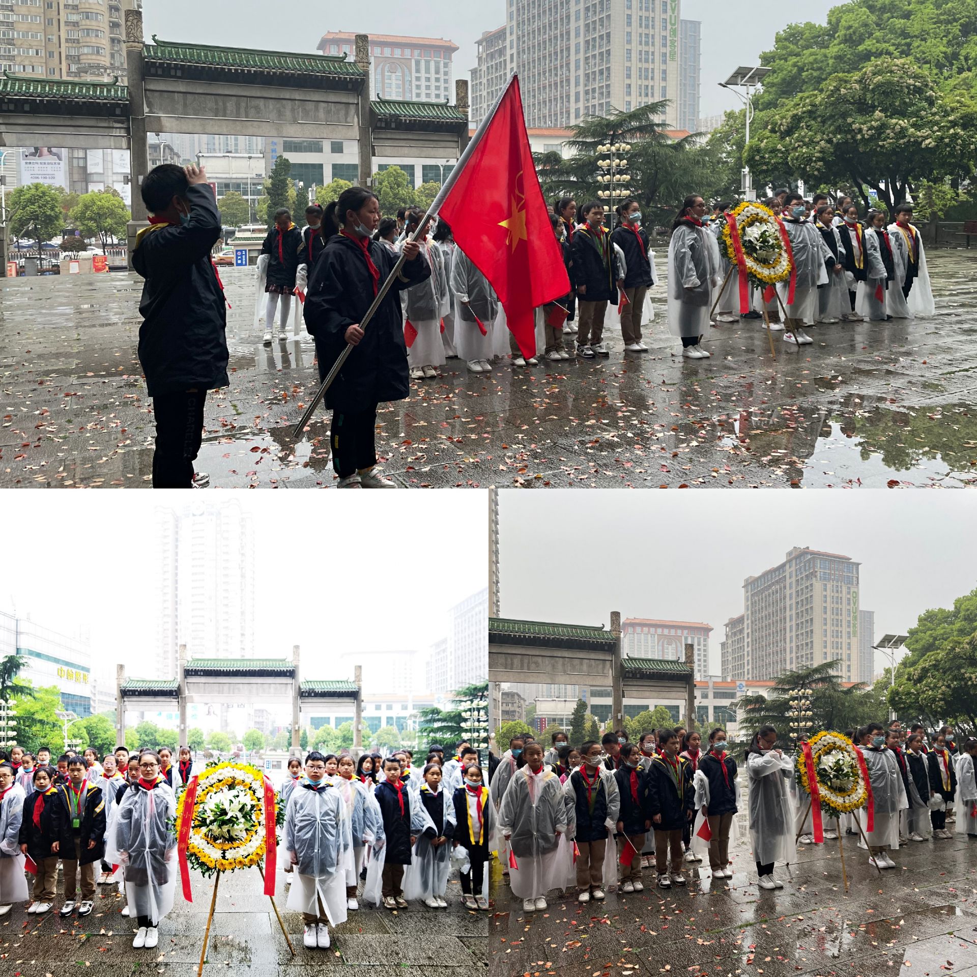 这是武汉经济开发区薛峰小学的师生代表们,在施洋烈士纪念碑前庄严宣誓!