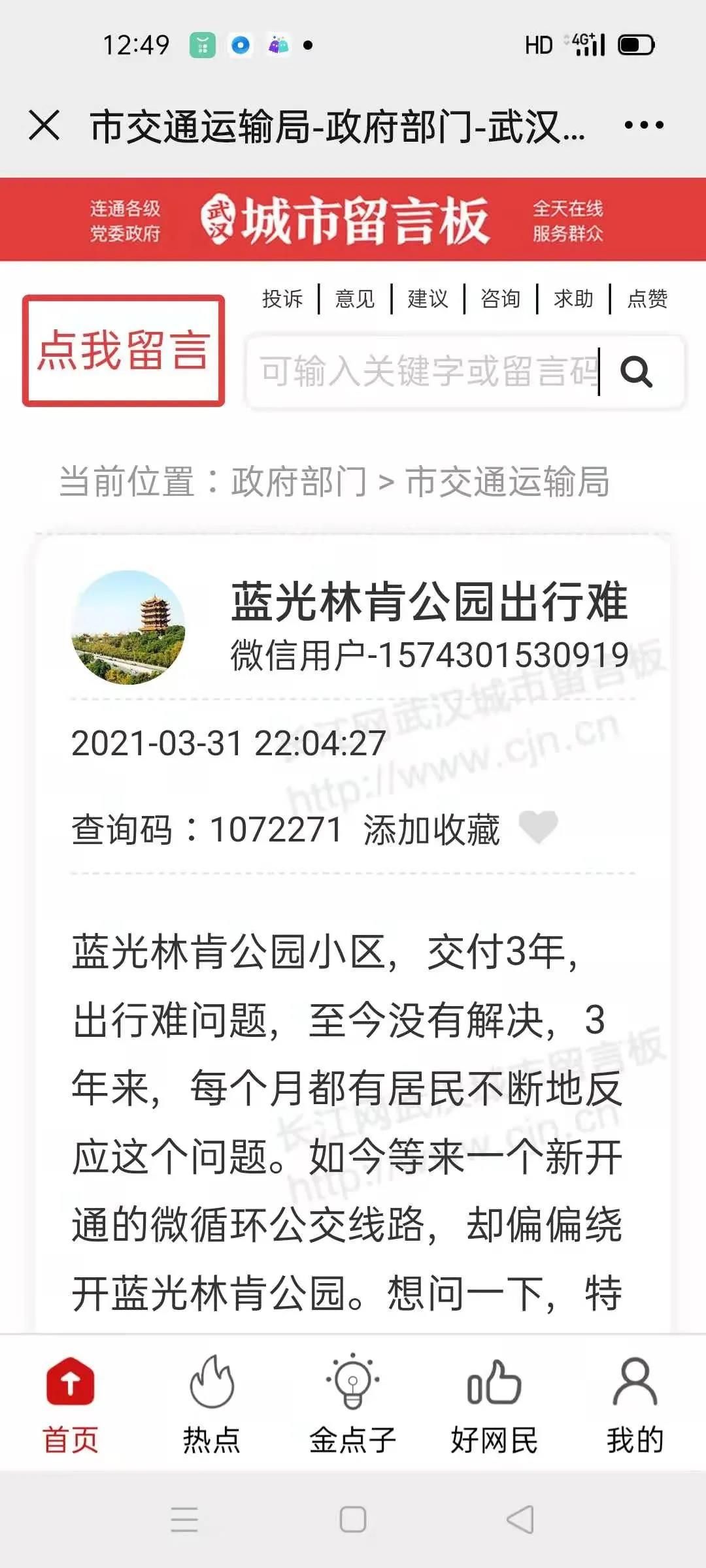 接到市民留言后,市交通运输局立即进行调查。武汉市交通运输局回复表示,经调查,蓝光林肯小区位于园博大道旁。前期,为方便园博大道沿线小区居民出行需求,公交部门开通了公交505路。由于园博大道附近道路交通设施尚不完善,现已无多余场站供其他公交线路停靠,故暂无法增加新的公交线路。