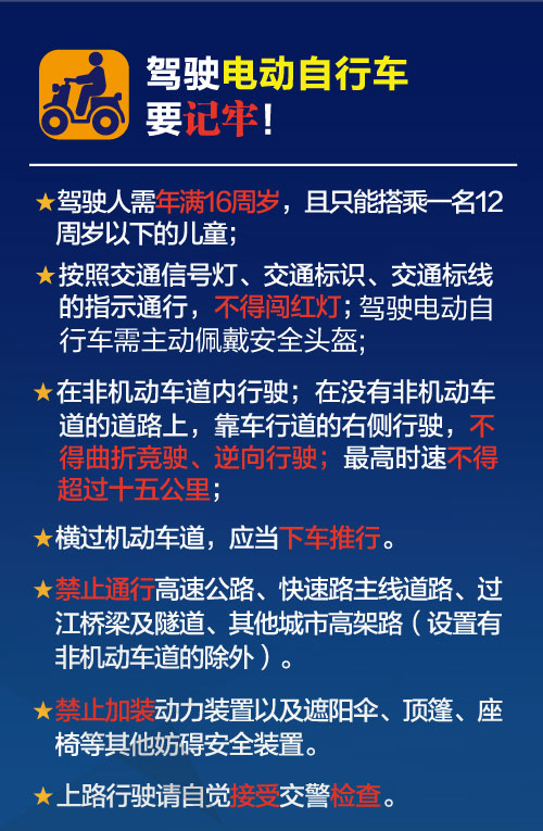 温馨提示,在驾驶电动自行车时,一定要戴头盔出行,遵守交通法规,这张图里的内容,请一定记牢!