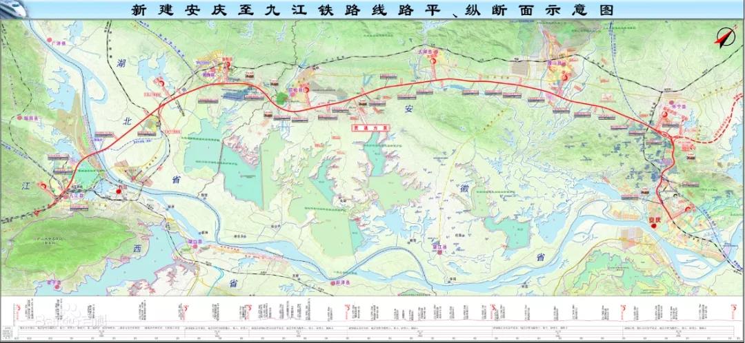 安九高铁起于安徽省西南部的安庆地区,经湖北省东南部的黄梅县,终到江西省北部的九江地区,是国家《中长期铁路网规划》中“八纵八横”高速铁路重要一横,是沪汉蓉沿江高铁重要组成部分,北接合安、合蚌、京沪高铁,南连武九、昌九、赣深等高铁,设计时速350公里,沿线途经皖、鄂、赣3省,正线长约170.9公里,设计时速350公里。