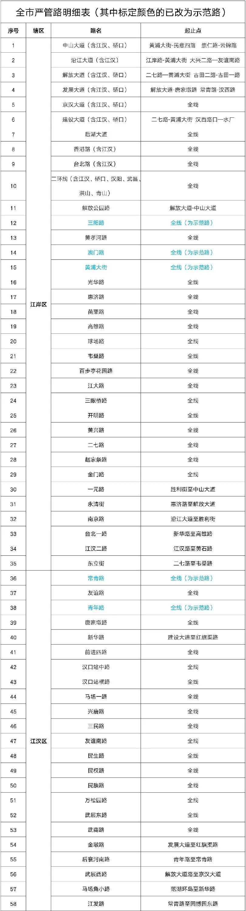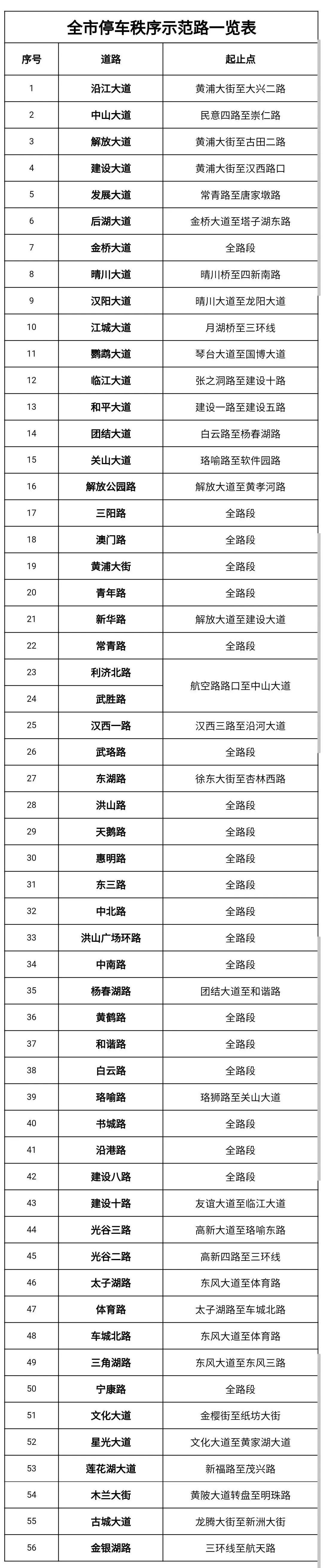 其实很简单全市各停车示范路、严管路及其他不能停车的路段