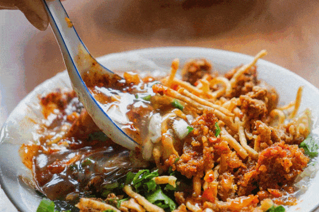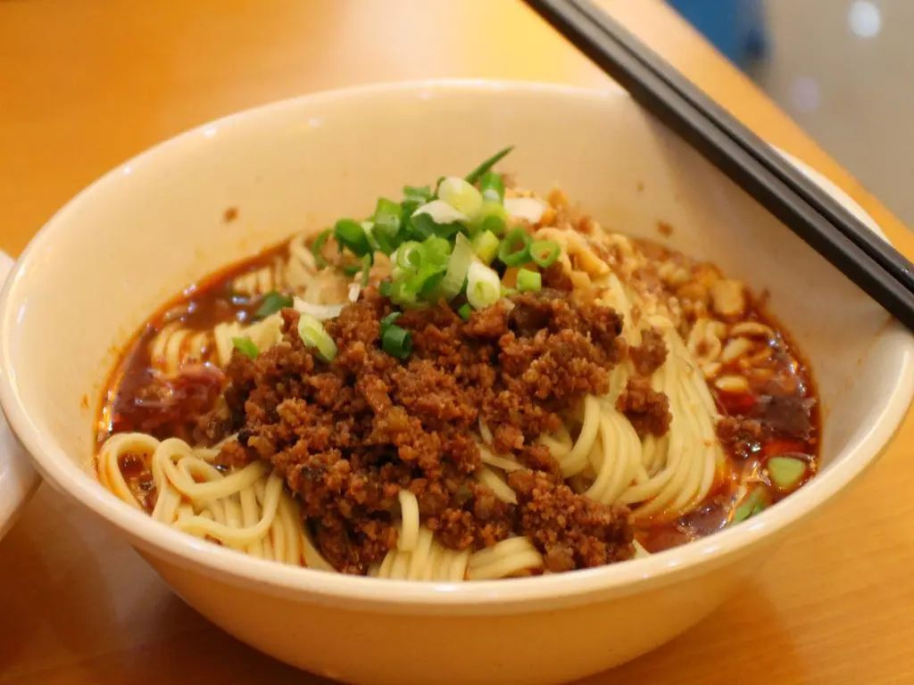 上面浇上辣椒油、秘制酱油、白芝麻、蒜蓉、花椒,辣中带甜,面条很劲道,是很多漂泊在外的成都人念念不忘的美味。