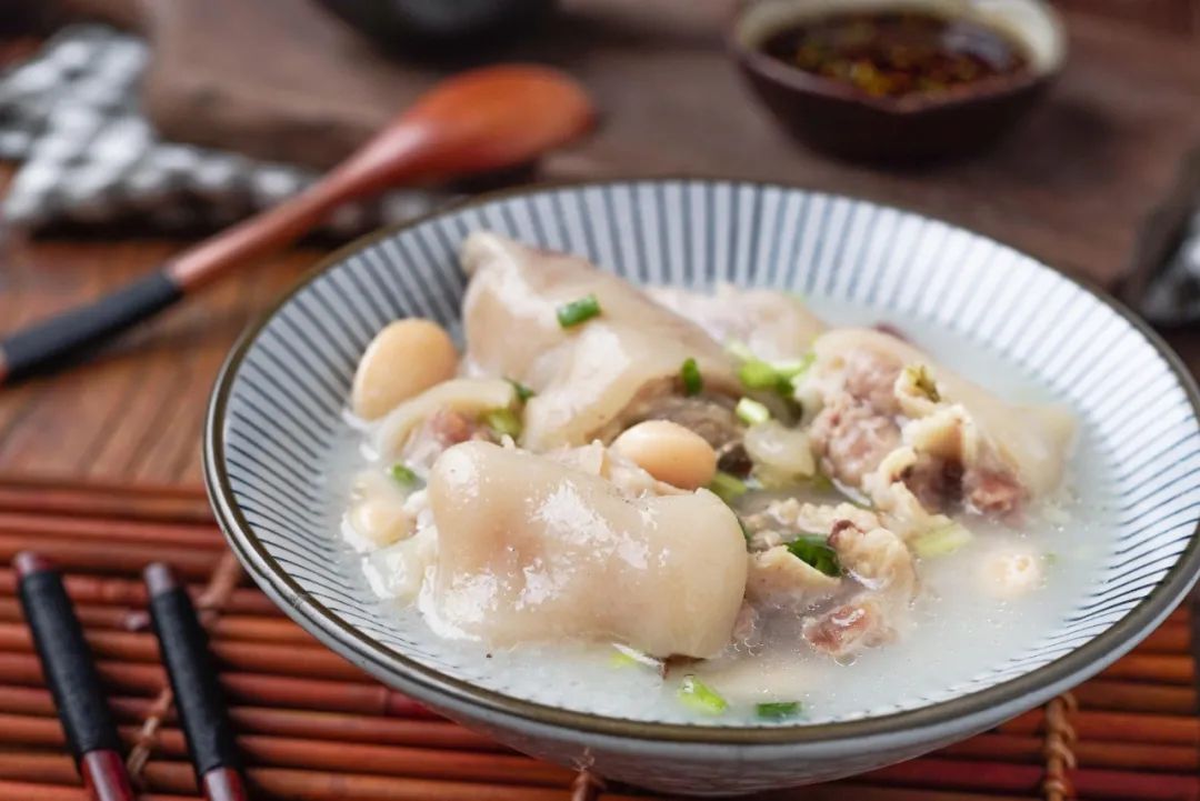 乳白色的蹄花和芸豆被舀起来盛在碗里,蹄花被炖得超级软烂,先喝上一口热汤治愈灵魂,再咬一口猪蹄,软糯无比,一抿即化。