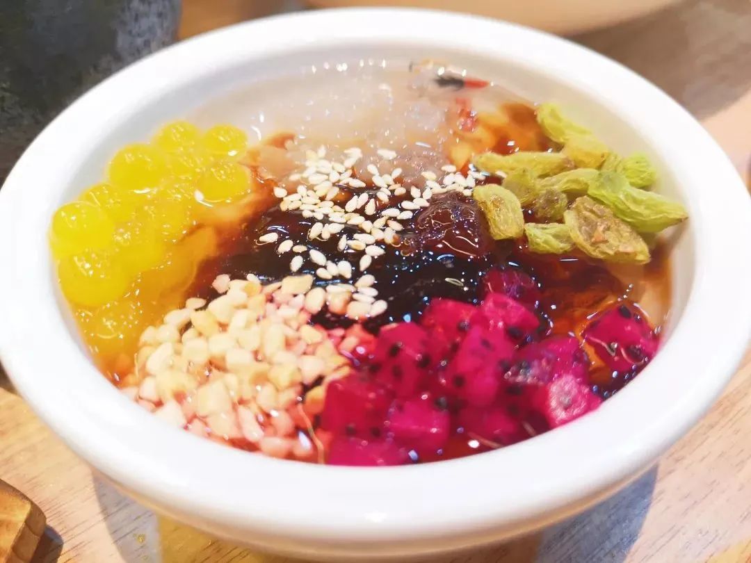 吃了太多辣之后,在路边点一碗又凉又甜的冰粉,里面加上红糖、花生、葡萄干,正好降火。
