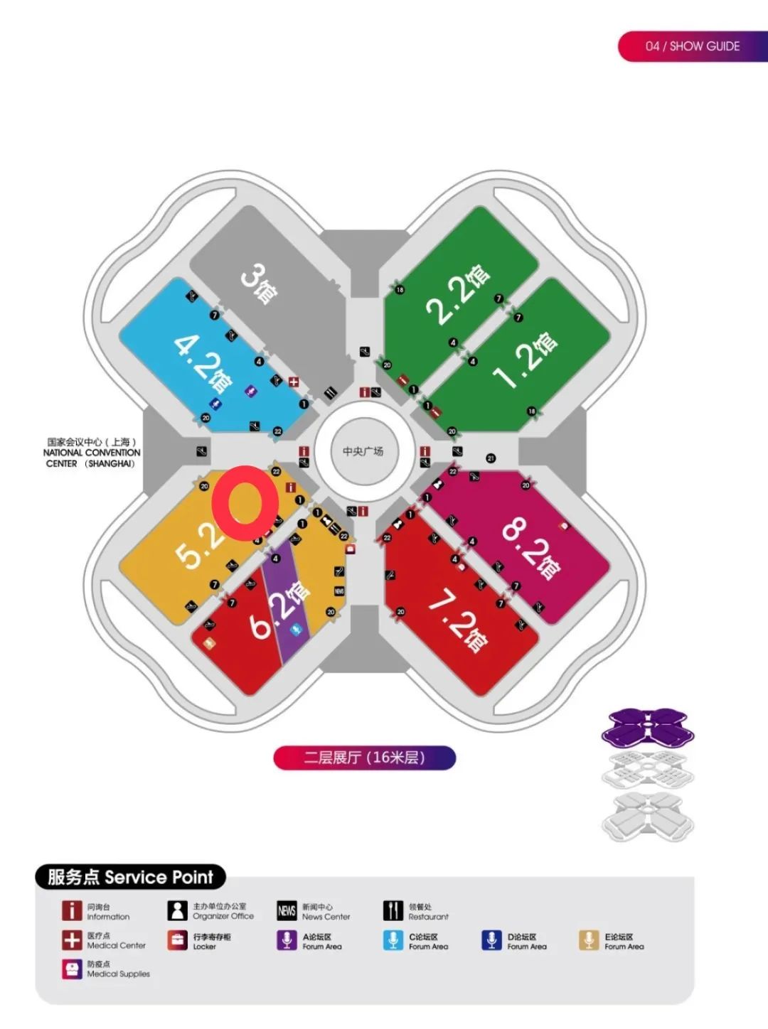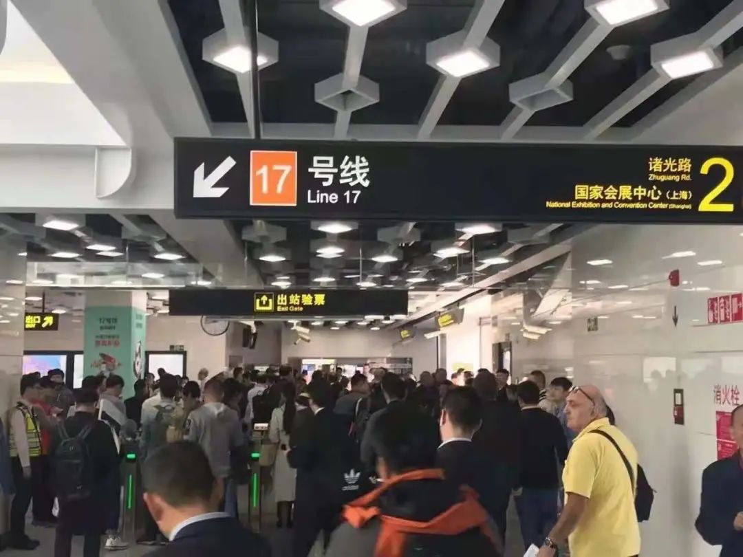 在客流高峰时段,为避开徐泾东站拥挤区域,建议大家通过10号线换乘17号线到诸光路站后,由北广场进入场馆。