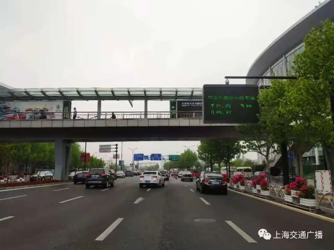 另外,在展馆周边的6个道路交叉口处,交警部门设置了可变车道,会根据实时车流情况进行调整。