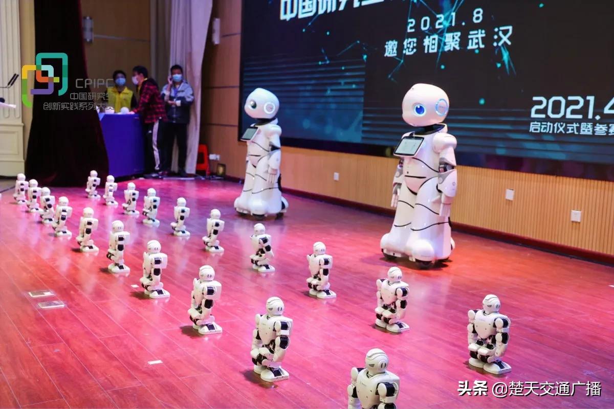 启动仪式上,20多个机器人在富有节奏感的背景音乐下,跳起整齐划一舞步,带给观众一场别开生面的视觉盛宴。