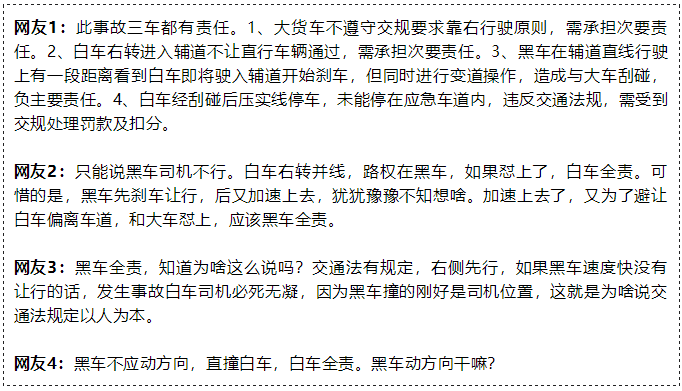 原来,白色小车从来宾往柳州方向行驶,从服务区出来准备驶入车道时,未让直行的黑色小车,致使黑色小车避让时,车身左侧与正常直线行驶的大型汽车发生碰撞。