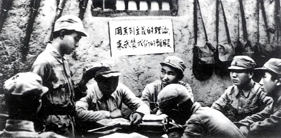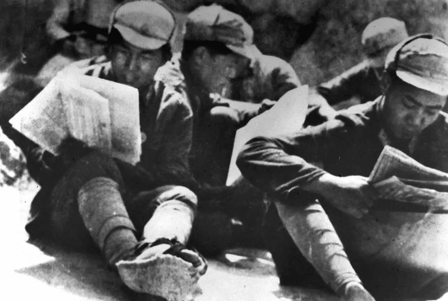 中国人民抗日军政大学的学员在学习整风文件。 新华社图片