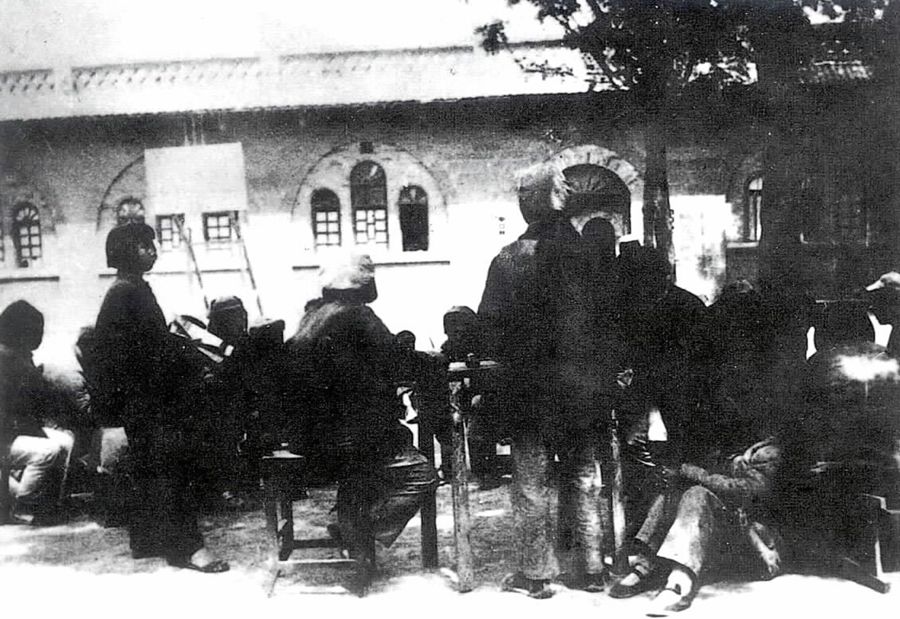 鲁迅艺术学院的学员在讨论整风文件。 新华社图片