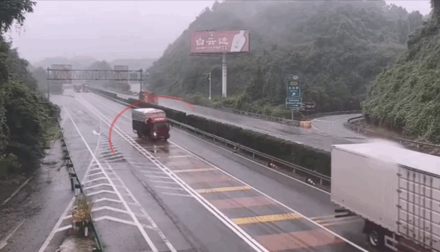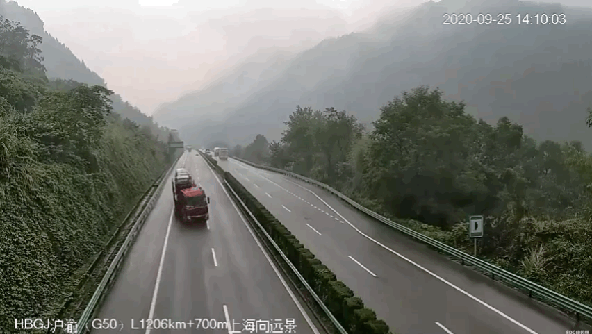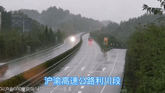雨天能见度差,部分山区高速公路会突发团雾,驾驶人开车要集中注意力,发现团雾要提前减速、打开前后雾灯和危险报警闪光灯,小心通过。