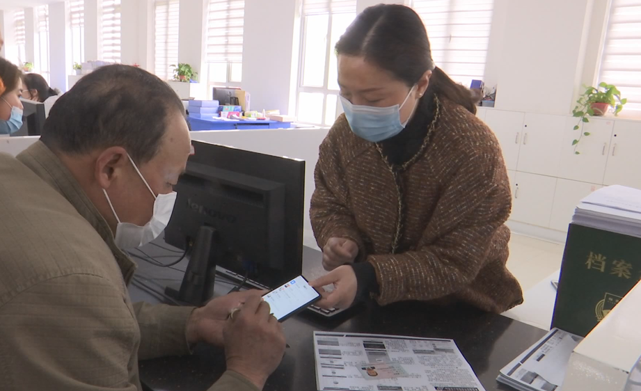 4月8日,记者在县人社局服务大厅看到,这里的工作人员正在教葛啟华老人通过手机微信“湖北12333”公众号为其进行城乡居民养老保险资格认证。