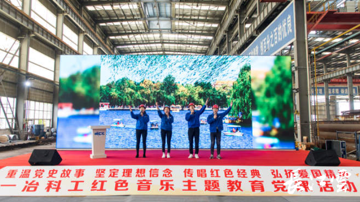 为庆祝中国共产党成立100周年,深入推进党史学习教育活动,丰富党课表达空间,引导全体党员干部、车间工人回顾百年党史,传承红色精神,4月20日下午,中国一冶科工公司在阳逻生产车间隆重举行“重温党史故事 坚定理想信念 传唱红色经典 弘扬爱国精神”红色音乐主题党课活动。参与雷神山、火神山等防疫医院建设的建设者共计150余人参加了本次音乐主题党课。
