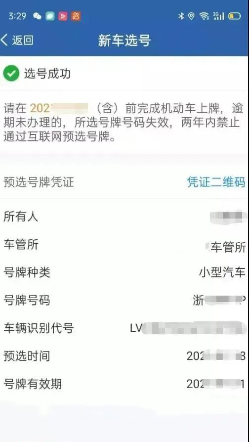 (4)不管是自编还是随机选号,完成选号后,系统将显示选中号牌的有效期限,您需要在这之前办理注册登记业务。如果逾期未办理的,您选中的号牌将失效,且您将会被列入黑名单,不允许在互联网上进行预选号牌号码,2年后将自动解除黑名单。