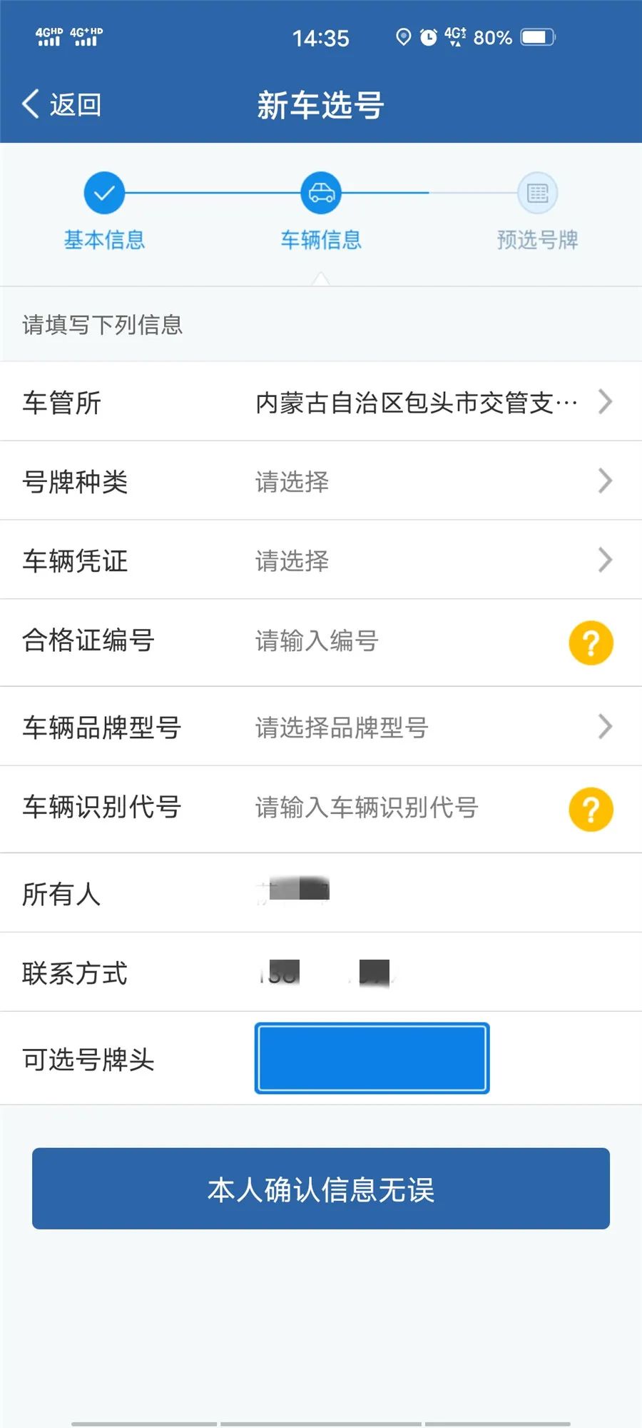 1、新车选号:小型汽车、小型新能源汽车、大型新能源汽车。