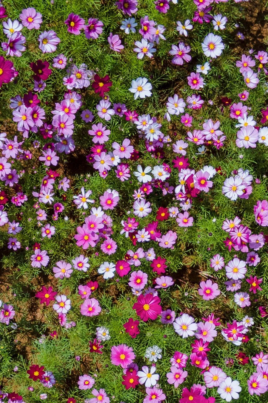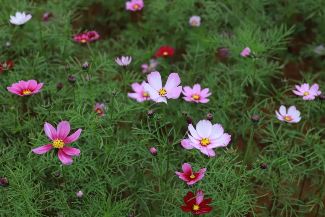 波斯菊的种子有自播能力,一经栽种,就会生出大量自播苗,然后长出大片波斯菊,在微风中摇曳。