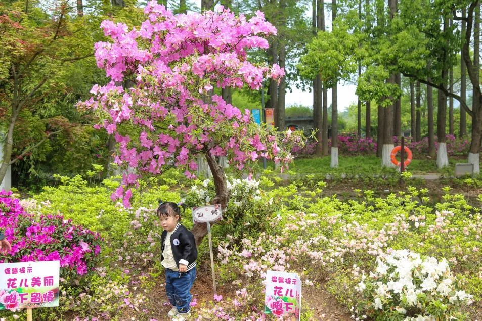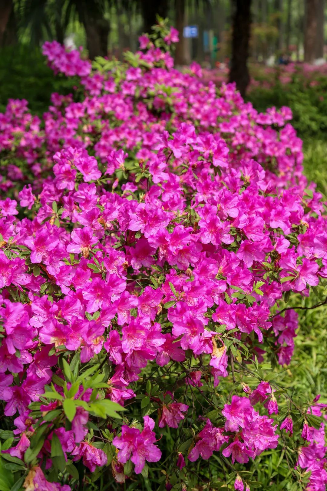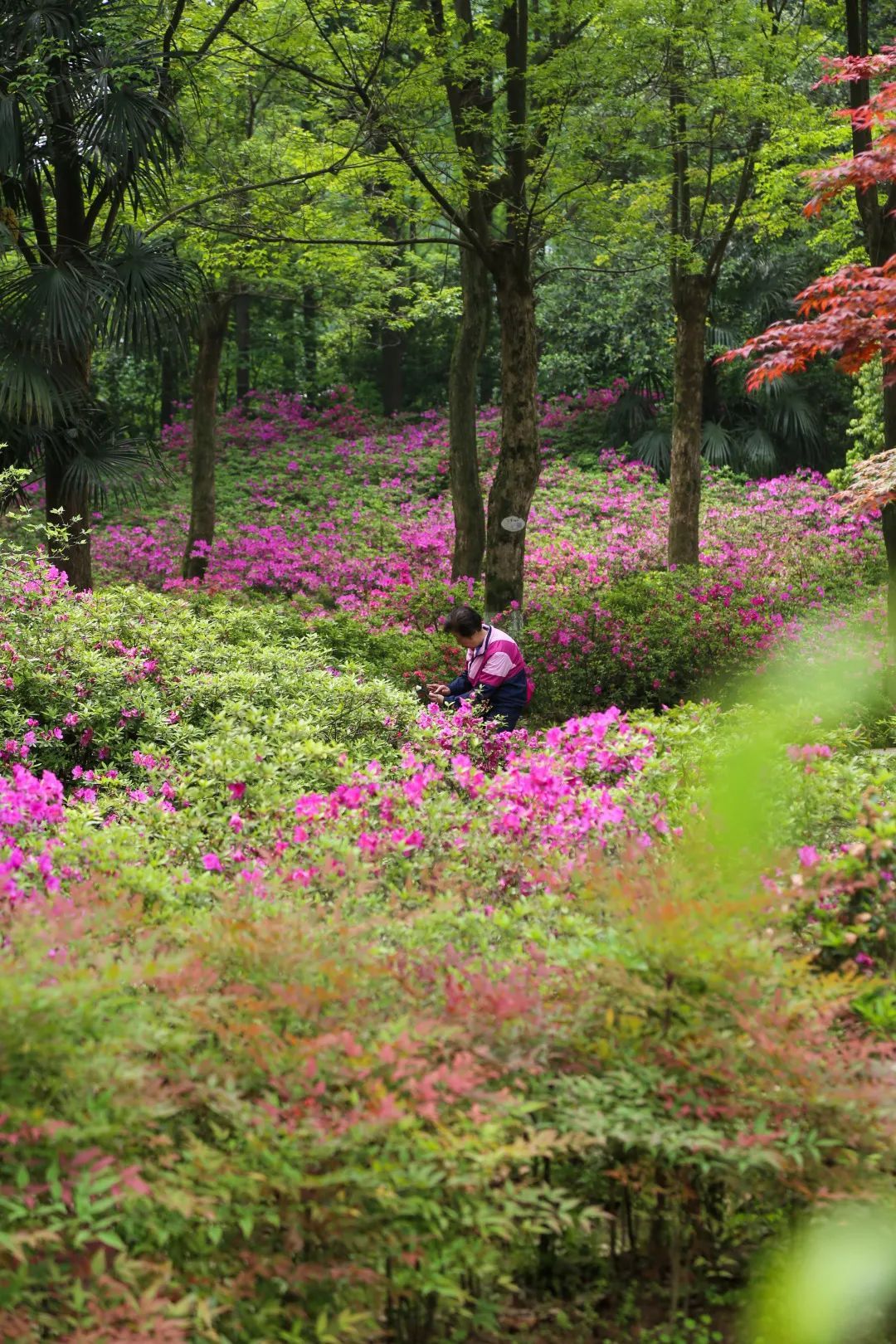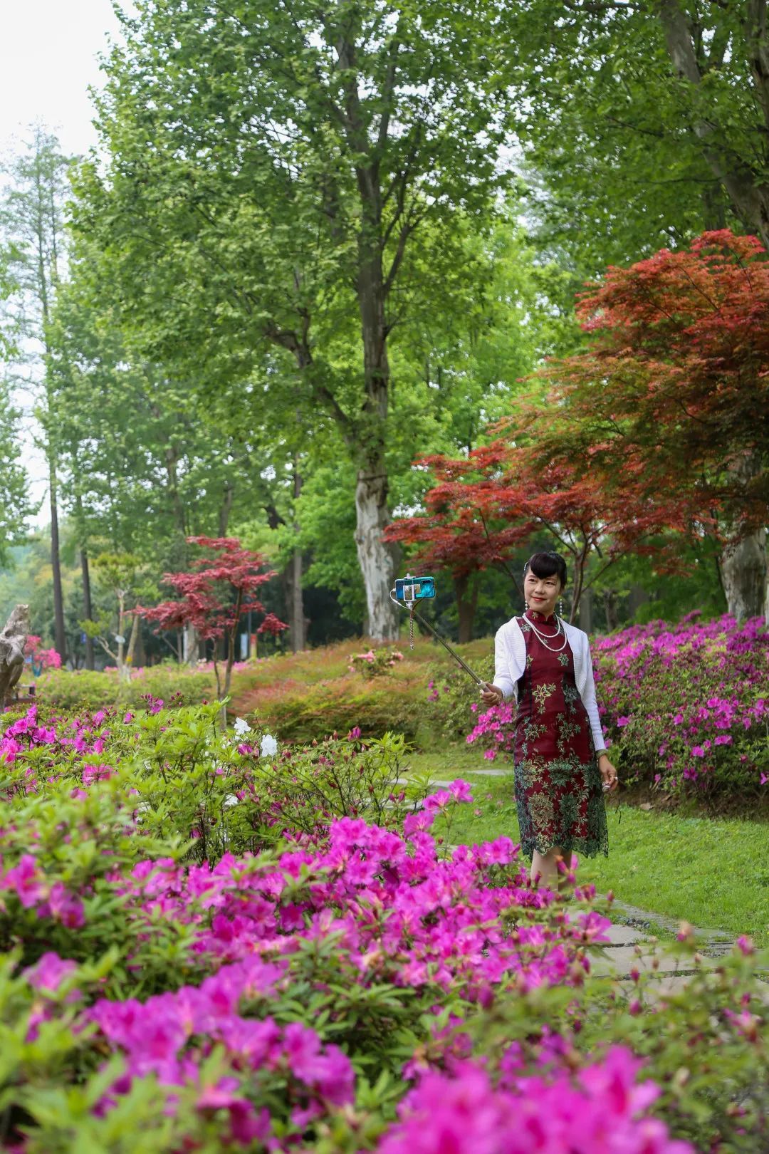 园内多点开花的栽种,不仅能让游人随处赏到杜鹃美景,也可避免游人在一处扎堆,这样拍起照来也是更加方便!大家只需要在公园里寻一处好位置,安安静静地拍人拍杜鹃,少了拍照一秒钟排队五分钟的疲劳,实在是惬意舒心!