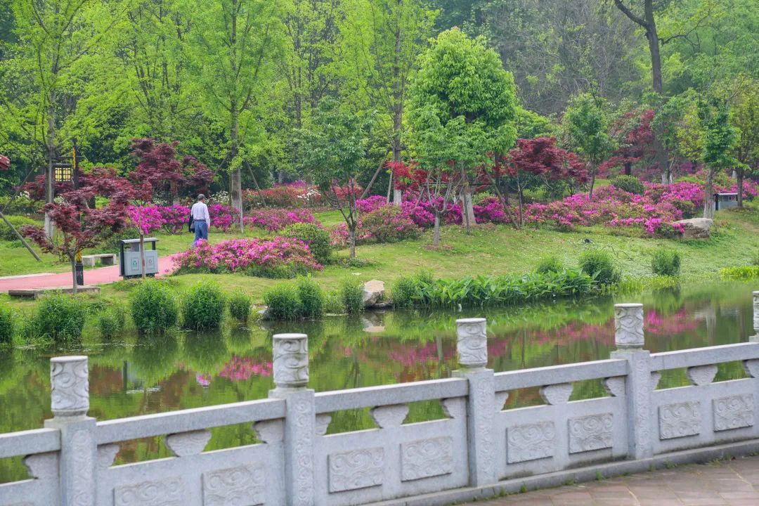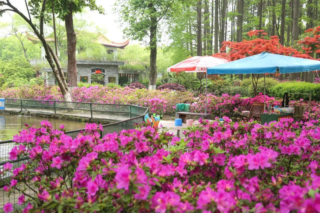 说起武汉赏杜鹃,那青山公园必须拥有姓名。青山公园素来有“万株杜鹃园”的称号,是目前武汉市内最大的免费观赏杜鹃的公园,以其园中丰富的杜鹃品种、最大的栽植规模,成为武汉新花城十景之一。