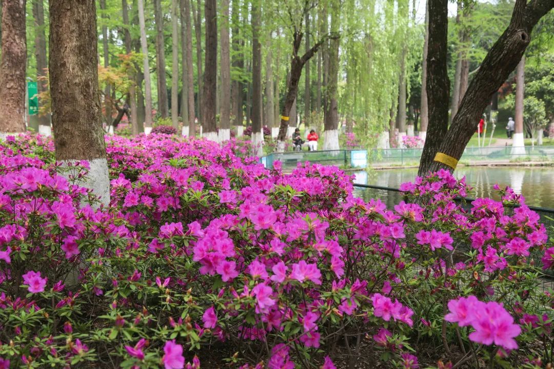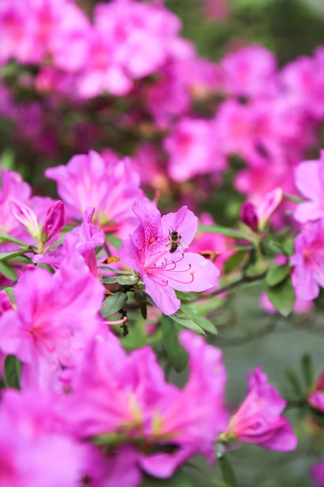 青山公园的杜鹃园,观赏杜鹃的朋友千万不可错过,这里是杜鹃品种更集中、精致度更高的地方,基本上涵盖了上文中小编提到的大多数杜鹃品种,五光十色的杜鹃,配以水波不惊、垂柳飘飘作为背景,随手一拍就能拍出秒杀朋友圈的照片。