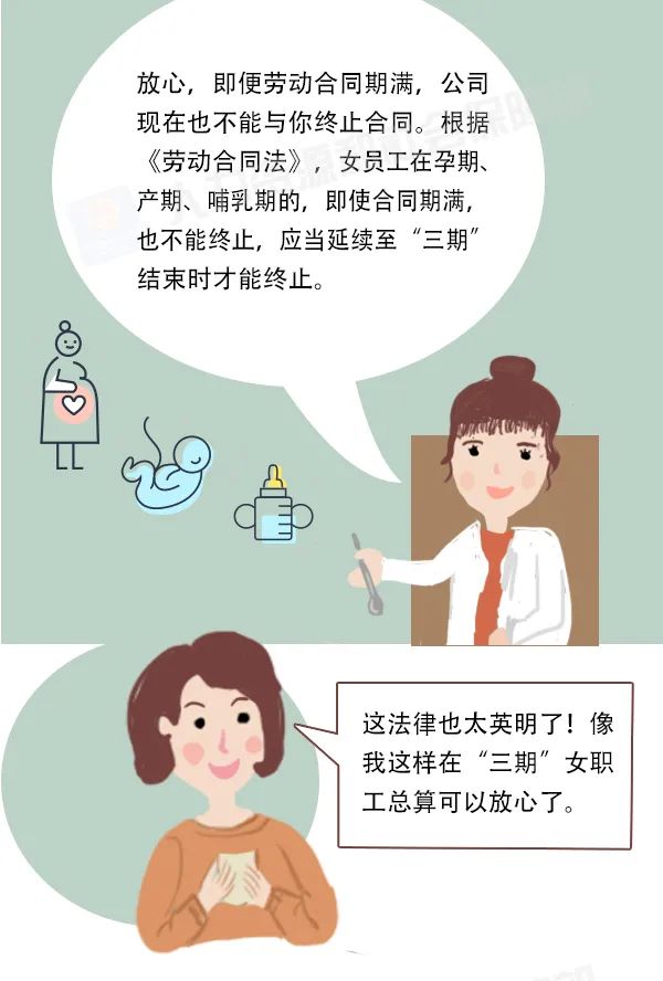 根据劳动合同法,劳动合同期满,有以下情形之一的,劳动合同应当续延至相应的情形消失时终止: