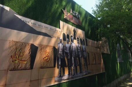 襄阳市纪委监委派驻市住建局纪检监察组督促驻在部门多举措、多形式开展党史学习教育,营造出“随时随地学党史,每时每刻在洗礼”的浓厚氛围,让党史学习教育随处可见、多点开花。图为在城区建设工地围档上制作张贴的党史宣传浮雕图画。