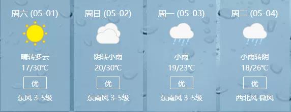 根据市气象部门一周的天气趋势显示,“五一”假期前三天,天气呈现先晴后雨的态势,最高温可能达到31℃。半只脚就要跨越到夏天了,短袖务必要备上,但是天气变化跨度大,春季的衣服也别急着收。