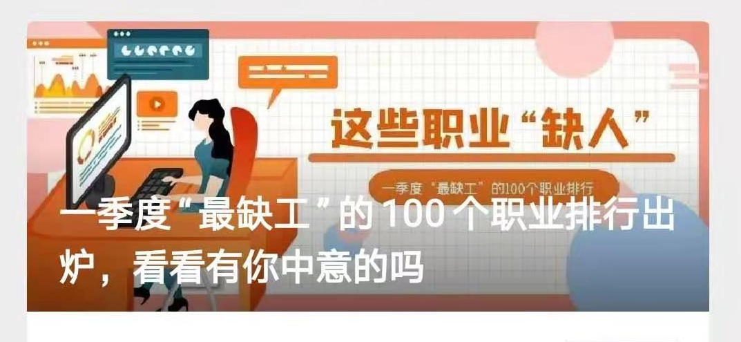 “2021年第一季度全国招聘大于求职“最缺工”的100个职业排行”