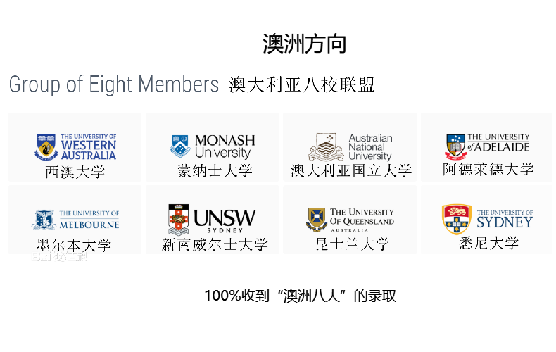 所有收到澳大利亚大学录取的同学,100%收获来自最负盛名的“澳洲八大”offer。
