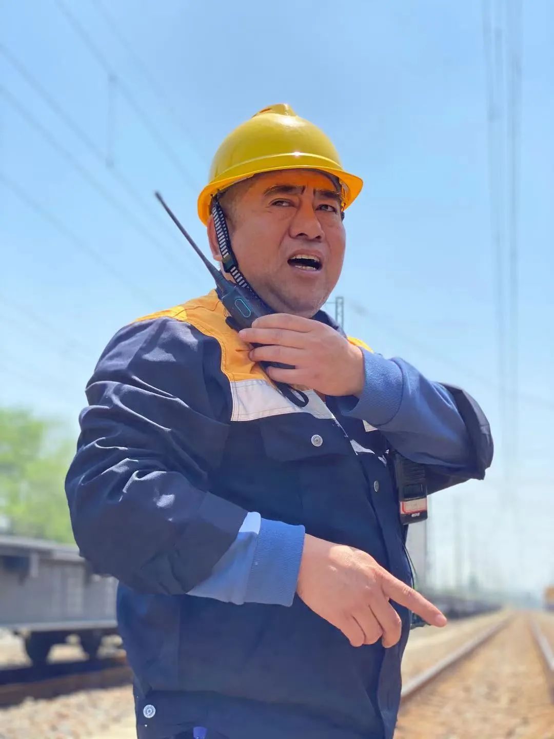 4月29号中午12点刚过,4列供电维修火车就缓缓的驶入了中国铁路武汉局集团武汉供电段武昌车间,在车间里刚扒了几口饭的接触网工班工长王宏伟,听到列车的轰鸣声,马上叫上了班组里的三十多个工友带齐装备,迅速上了火车。30分钟后,维修列车抵达丹水池站,王宏伟第一个跳下了火车,与调度台联系: