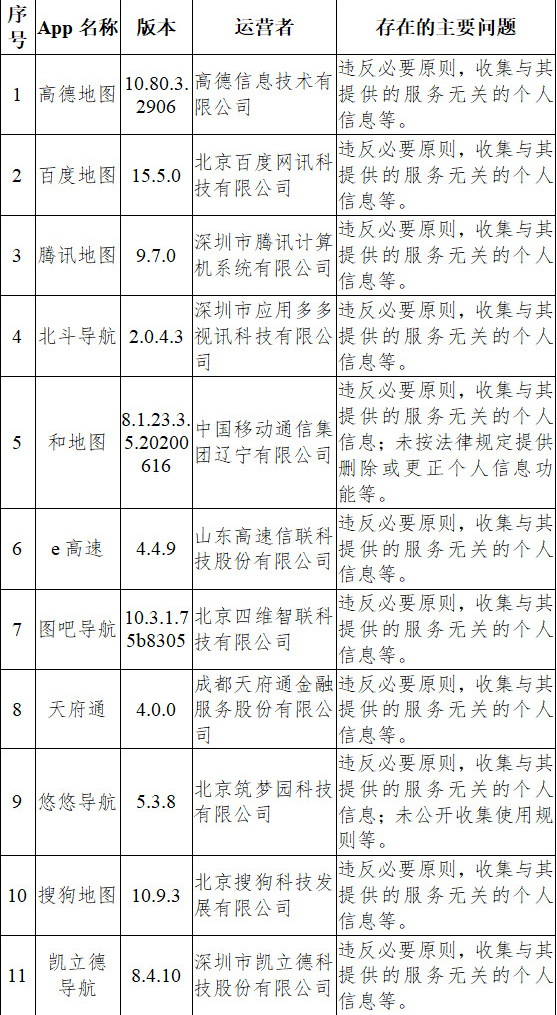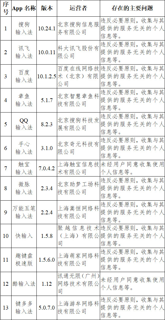 近期,针对人民群众反映强烈的App非法获取、超范围收集、过度索权等侵害个人信息的现象,国家互联网信息办公室依据《中华人民共和国网络安全法》《App违法违规收集使用个人信息行为认定方法》等法律和有关规定,组织对输入法、地图导航等常见类型公众大量使用的部分App的个人信息收集使用情况进行了检测。现将有关情况通报如下: