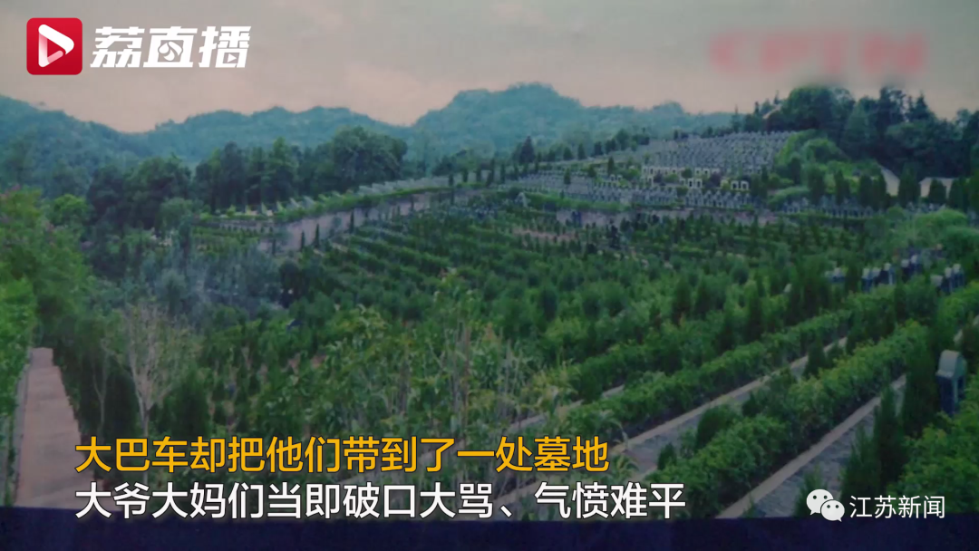 原来,大爷大妈们被大巴车带到了巴南区圣灯山附近的一处陵园。大家的心情一落千丈:天天跳舞锻炼,身体正好,却被拉到这么个地方,实在感觉有些晦气!发觉事情不对劲的郑大爷慌了手脚,赶紧找到随车的旅游公司工作人员了解情况。