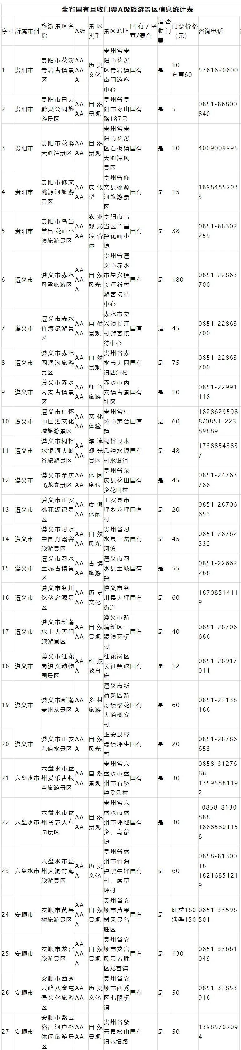 在严格实施“限量、预约、错峰”制度并做好疫情防控工作的前提下,贵州省内开放的国有A级景区(不包括温泉景区、景区内特许经营性项目和特许经营性景区)实施头道门票免费。