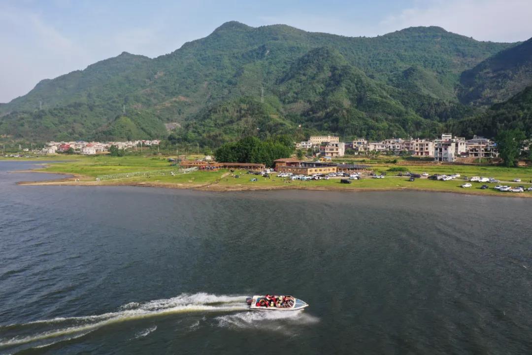 5月2日,游船在通山县大畈镇富水湖湖面上劈波斩浪。“南畈乐园“、“新鹿港湾”等水上乡村旅游景区吸引了大批来自周边咸宁、武汉、黄石和外省江西等地的自驾游客。