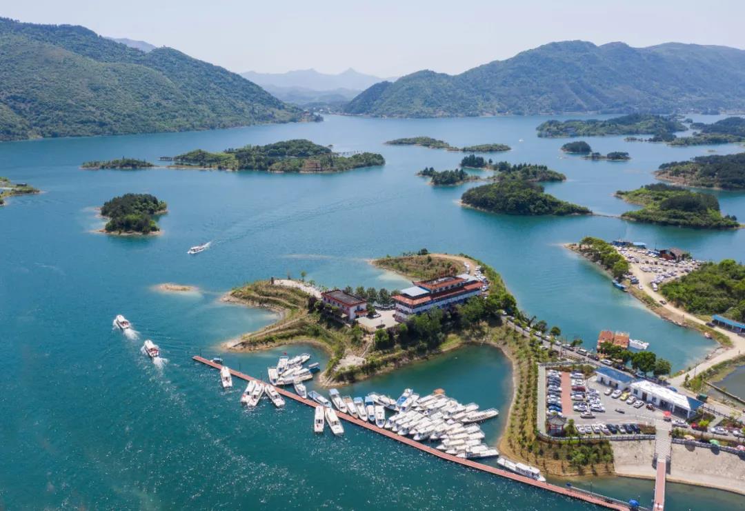 5月1日,阳新县王英镇仙岛湖景区,游船穿梭在碧波之上。
