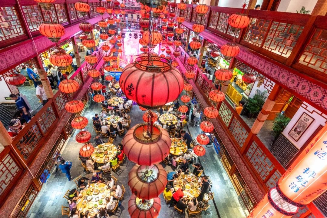5月3日,游客在恩施土家女儿城品尝土家风情宴。恩施大峡谷景区5月1日至3日累计接待游客5万多人次。