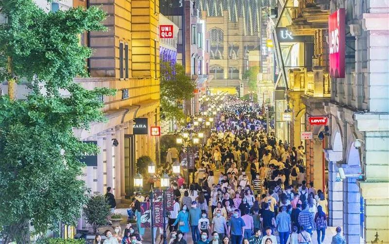 5月2日晚上,前来汉街购物游玩的游人摩肩接踵、络绎不绝。