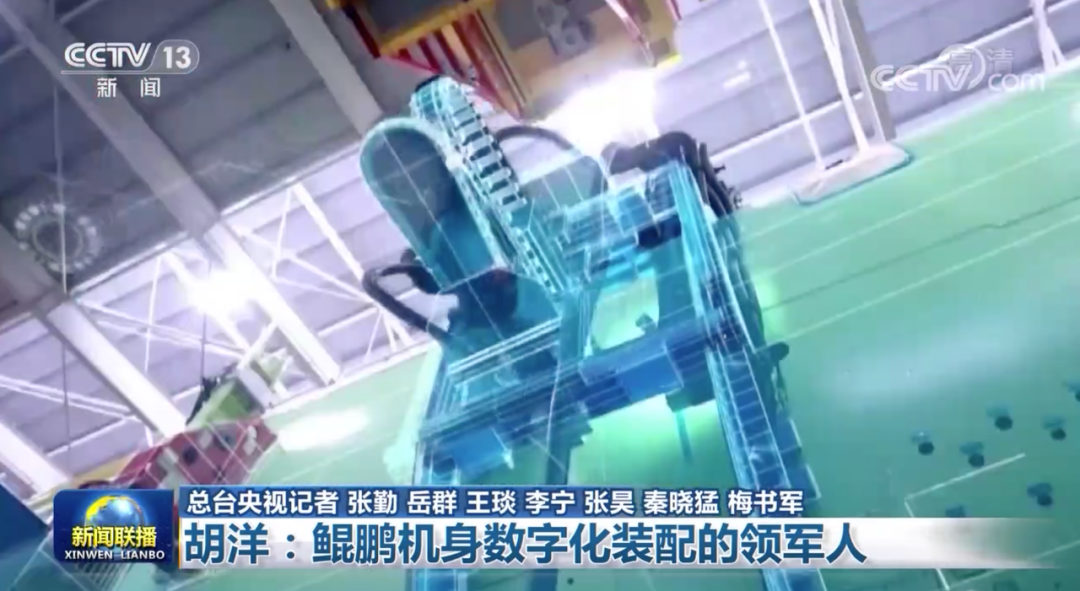 机身调姿对精度要求极高,全长50米的机身,各部位偏差不能超0.5毫米。飞机上任何一个小孔出现问题,都可能产生裂纹,久而久之,可能导致飞行中解体。以往这项工作需十几个人通力合作一个月才能完成,如今只要两三个人一天就可完成。胡洋带领团队实现了对大飞机机身数字化装配零的突破,将效率提高了百倍,精度达到毫米级。