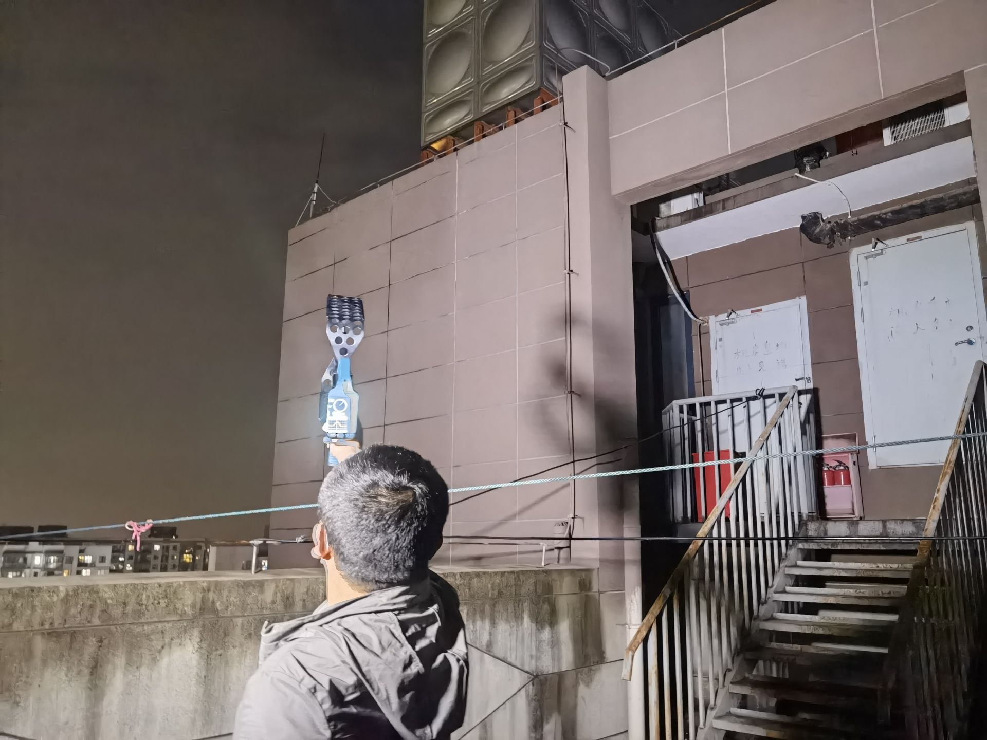 晚8时许,鄂州、黄冈联合监测组,在武汉东区域光谷左岭某小区牢牢锁定一“黑广播”。在公安的密切配合下,成功在小区某栋顶层电梯井上的平台发现了架设的“黑广播”天线,顺着天线馈线寻找,发现该“黑广播”主机及控制设备全部露天安装电梯井上,供电为盗用大楼物业电梯机房用电,架设成本低廉,隐蔽性极强。仔细记录了频点、设台位置、播放内容等相关信息,做好现场取证工作,保存音视频、图片等资料,现场拆除全套设备。