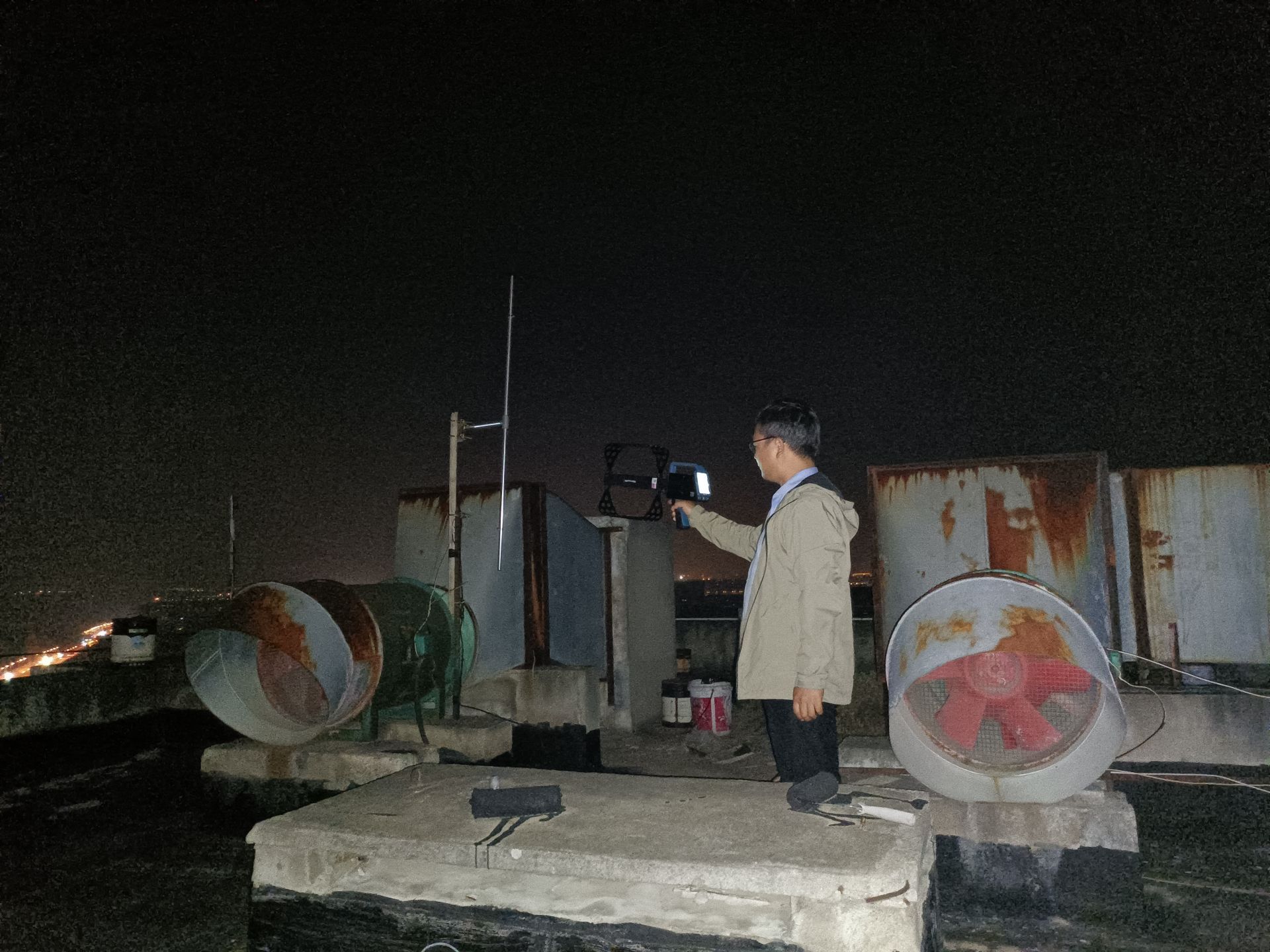 晚11:30,在武汉北黄陂区另一处“黑广播”区域,荆州监测组正紧张工作中,测向、定位、锁定,最终在某建筑物上,精准打击查处“黑广播”1个。