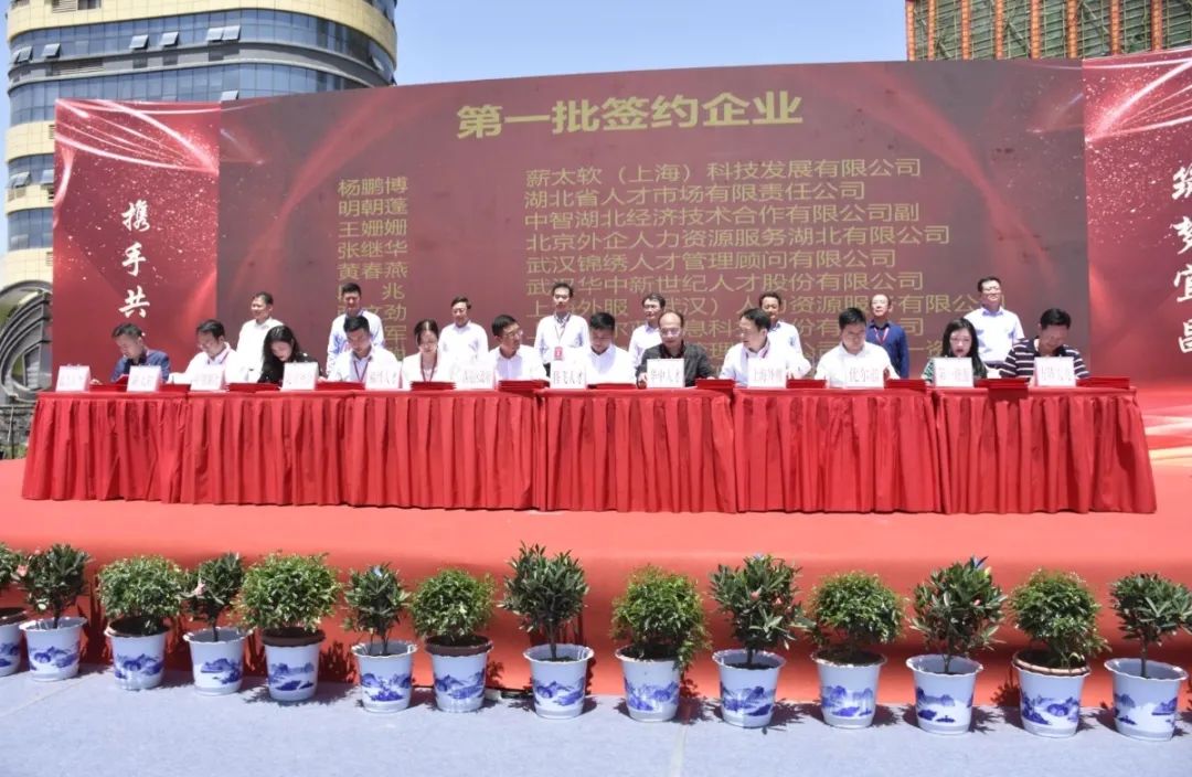 5月8日,宜昌人力资源服务产业园与46家首批入驻企业举行签约仪式。上海外服、薪太软等省内外人力资源行业优质企业入驻宜昌,宜昌人力资源高质量发展将向更“高”更“优”迈进。
