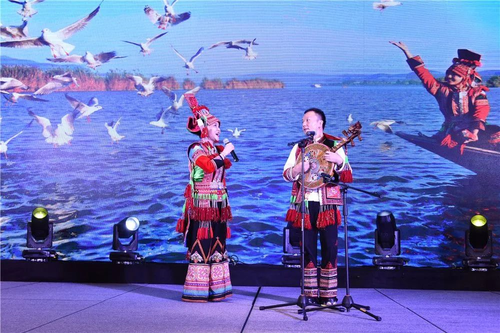 推介会上,国家一级演员、央视青歌赛“原生态唱法”金奖获得者李怀秀、李怀福姐弟俩震撼心灵的彝族天籁《海菜腔》搭配唯美的异龙湖风光,带来了一场少数民族文化与自然风光碰撞的视觉盛宴,将红河自然和谐共融的美感展现得淋漓尽致。