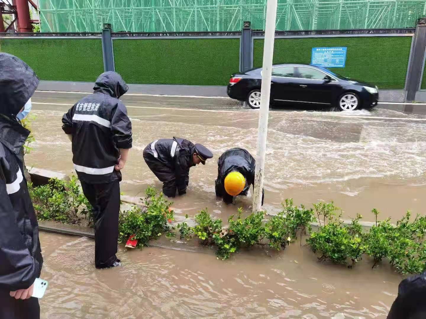 5月15日早间,武昌城管40多名应急突击队人员上路,前往友谊大道沙湖大桥桥头处、七星路口、友谊大道农业银行、水果湖周边等路段守控巡查,协助渍水排障和疏导交通,帮助过往行人安全通行。
