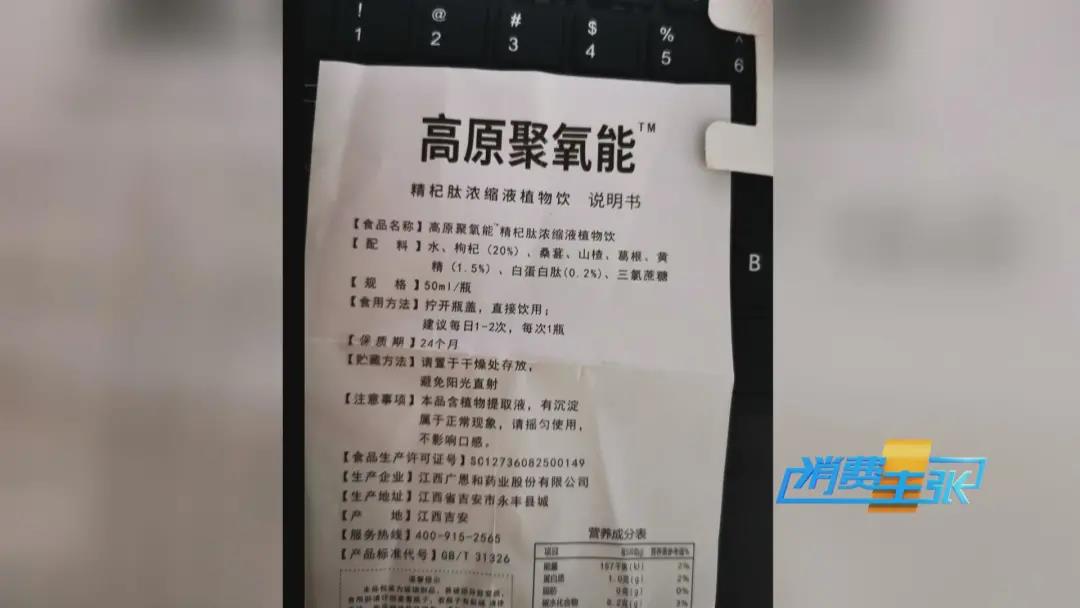 记者购买了一瓶后发现,除了产品名字为高原聚氧能之外,产品说明书中没有任何预防高反的功能。在产品的生产企业官网上,也没有任何字样显示该产品有预防高反的功能。